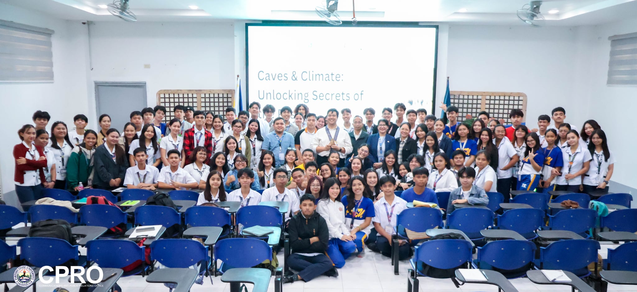 Following the fieldwork, a Lecture titled "Caves and Climates: Unlocking Secrets of the Past" was held at the Peninsula Hall of the Caramoan Campus Hostel, bringing together students, faculty, and researchers. Mr. Yambing discussed key principles of paleoclimatology and analytical methods involving ice cores, marine and lake sediments, tree rings, and cave proxies, highlighting how long-term climate reconstructions inform present-day climate analysis, enhance predictive models, and support risk assessment in climate-vulnerable regions such as the Philippines.
