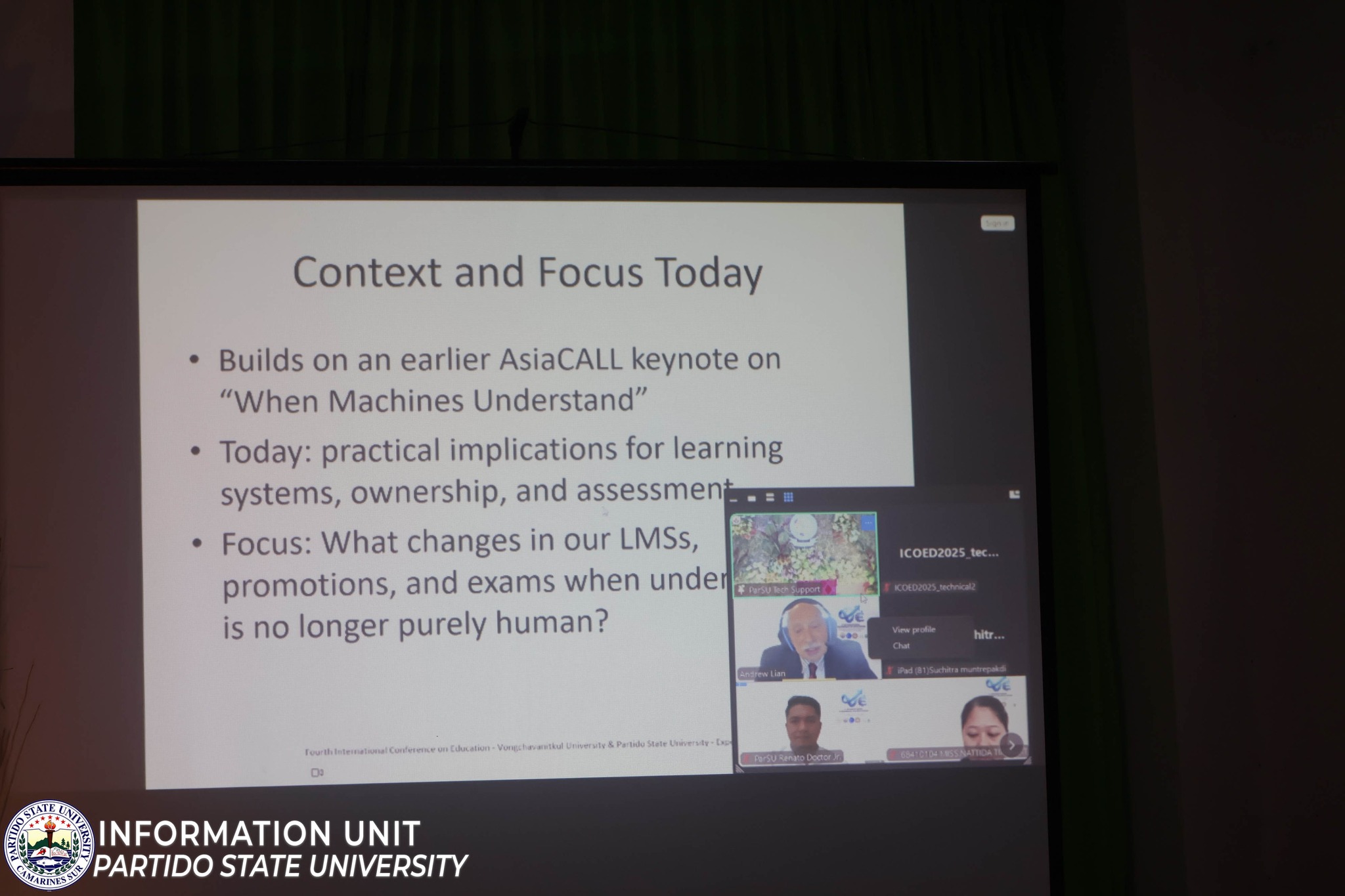 Partido State University College of Education (CED), in partnership with Vongchavalitkul Universityโs Faculty of Education, ASIACALL, and Goa Community College, hosted the 4th International Conference on Education on December 12, 2025, to respond to the the urgent need for dynamic, research-informed, and future-forward approaches to teacher professional development. This yearโs gathering aimed to transform how professional development is designed, delivered, and sustained for 21st-century educators.