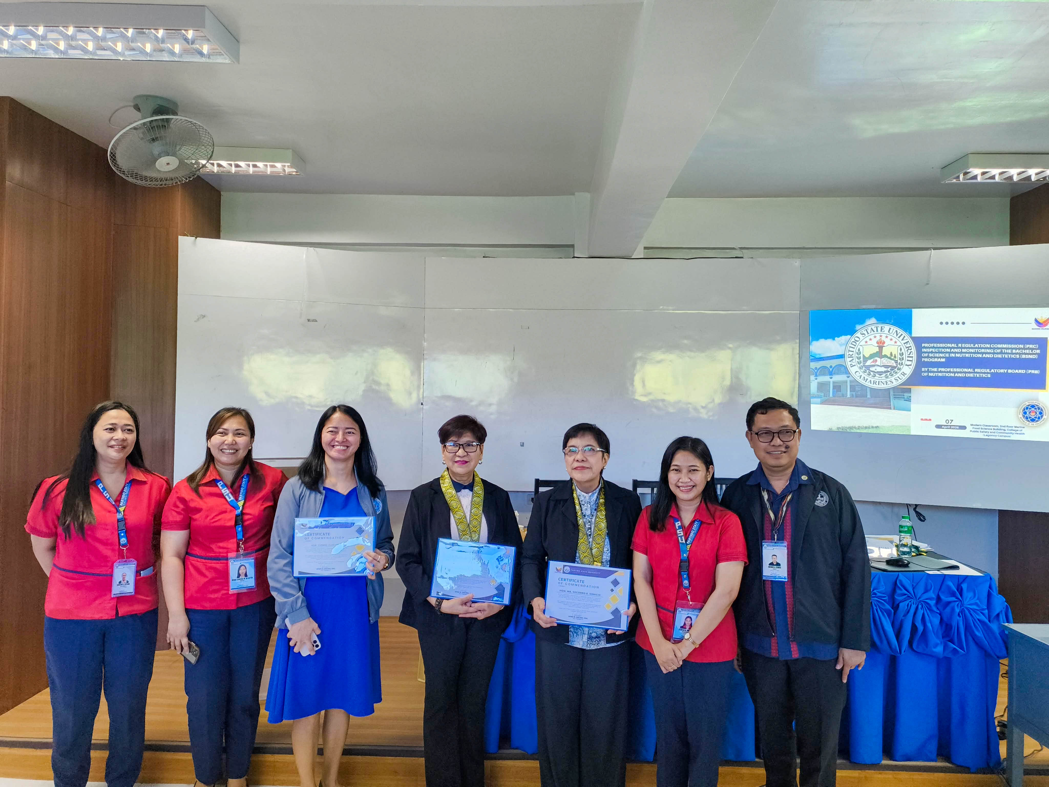 Partido State Universityโs College of Public Safety and Community Health (ParSU CPSCH) - Lagonoy Campus was formally assessed by the Professional Regulation Commission (PRC) through a Physical Inspection and Monitoring of its Bachelor of Science in Nutrition and Dietetics program on April 7, 2026, as part of the Universityโs continuing commitment to academic excellence and adherence to national quality standards.