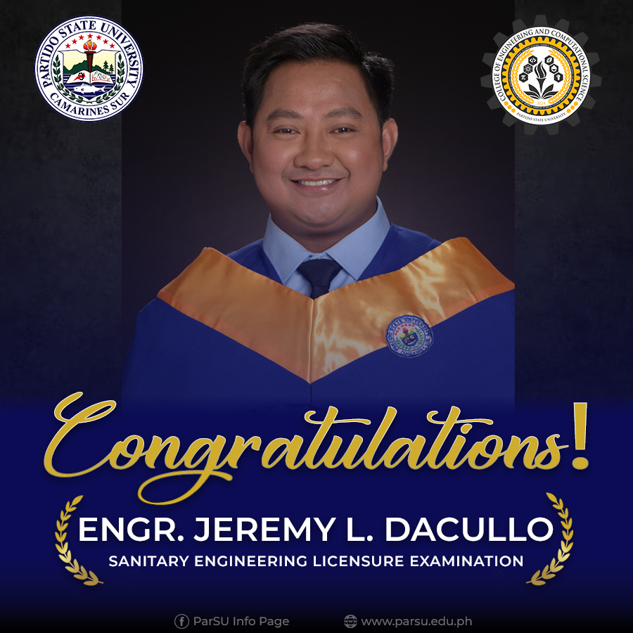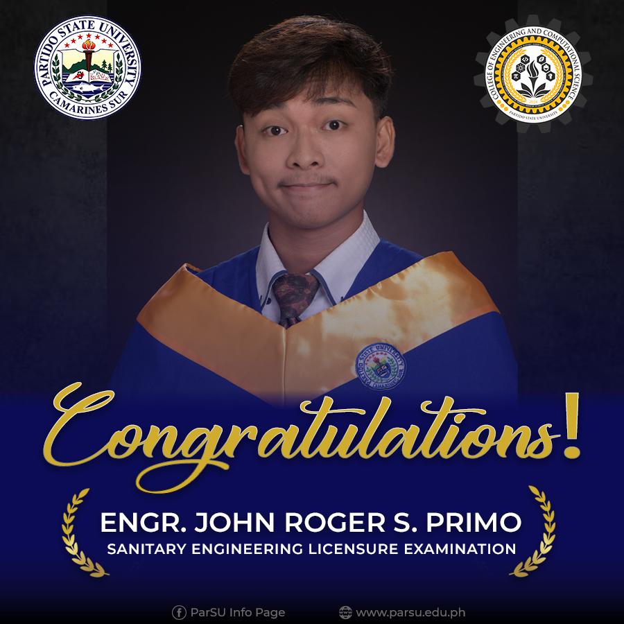 Jasper S. Trilles, Rank 4 (82.52%), February 2024 Sanitary Engineer Licensure Examination. 83.33& Passing Rate for first time takers. | |