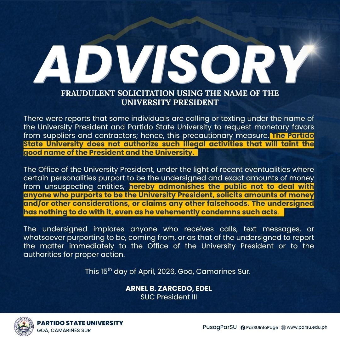 20 April 2026Partido State University (ParSU), in partnership with Central Bicol State University of Agriculture (CBSUA), officially strengthened its research collaboration through a Memorandum of Agreement...