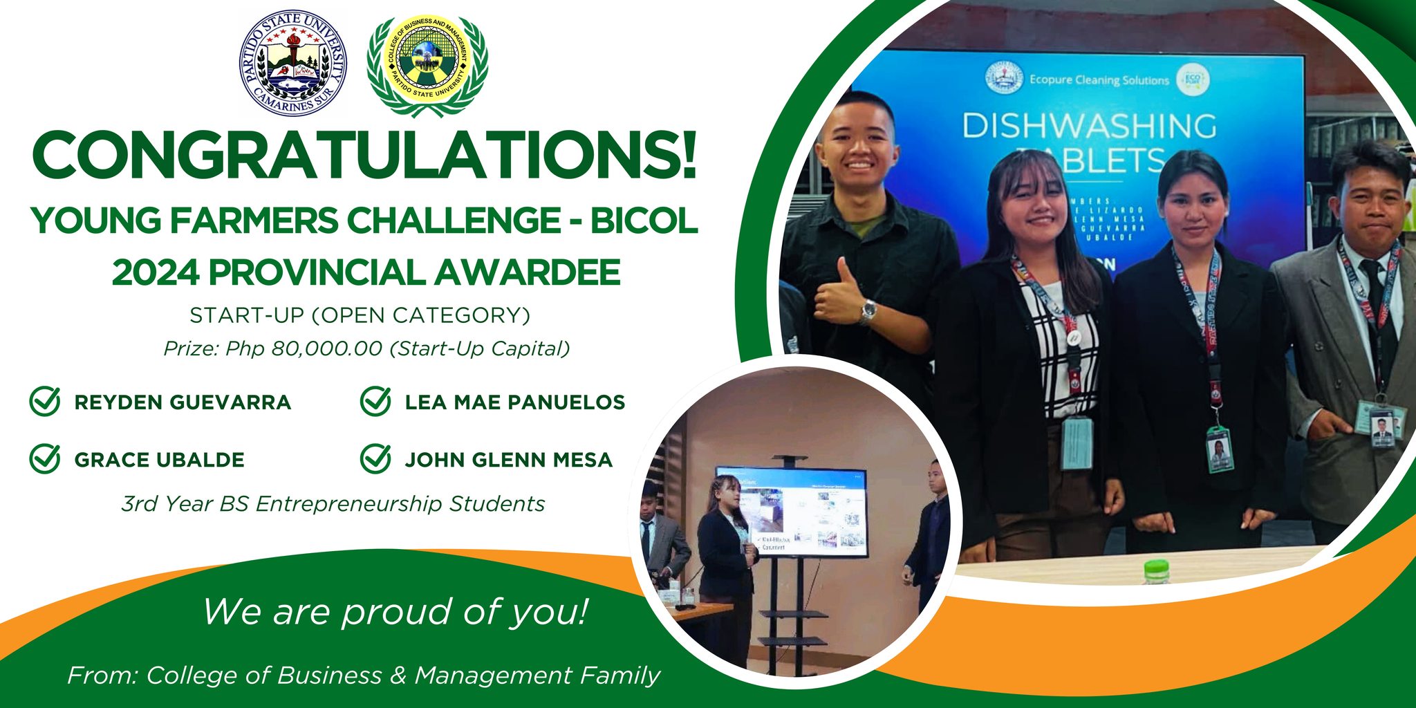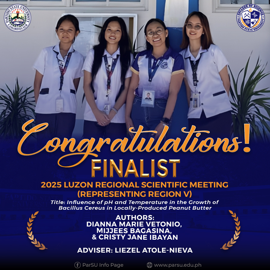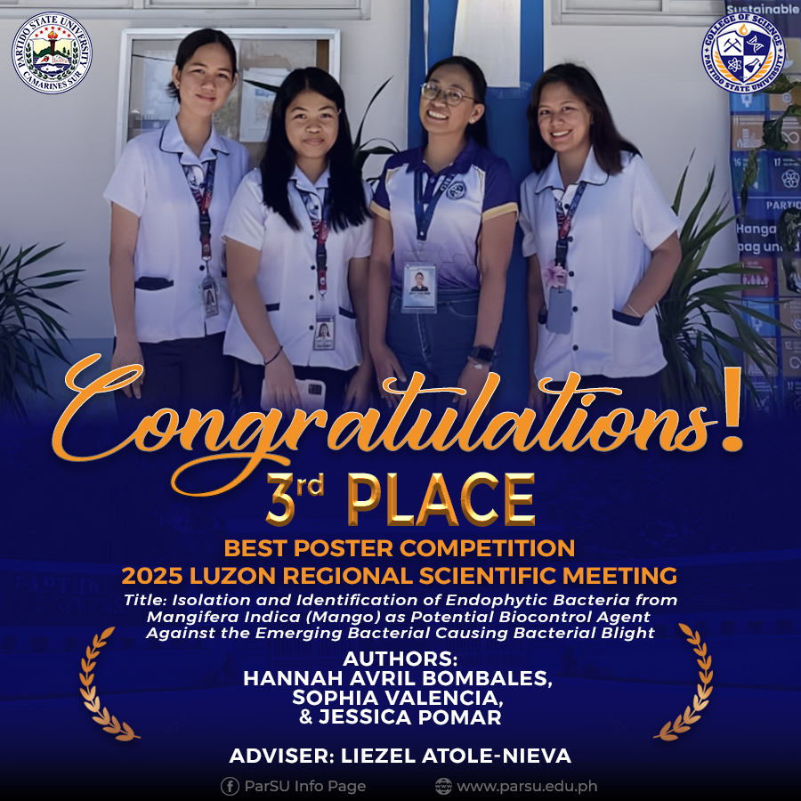 John Christopher C. Nullan, Rank 5 (85.25%), October 2022 Fisheries Technologist Examination. Of the 6 first takers, 5 passed the examination which posted for the institution a passing rate of 83.33% above the 38.44% national passing rate. | |