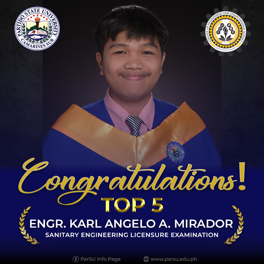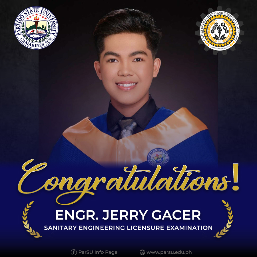 Jasper S. Trilles, Rank 4 (82.52%), February 2024 Sanitary Engineer Licensure Examination. 83.33& Passing Rate for first time takers. | |