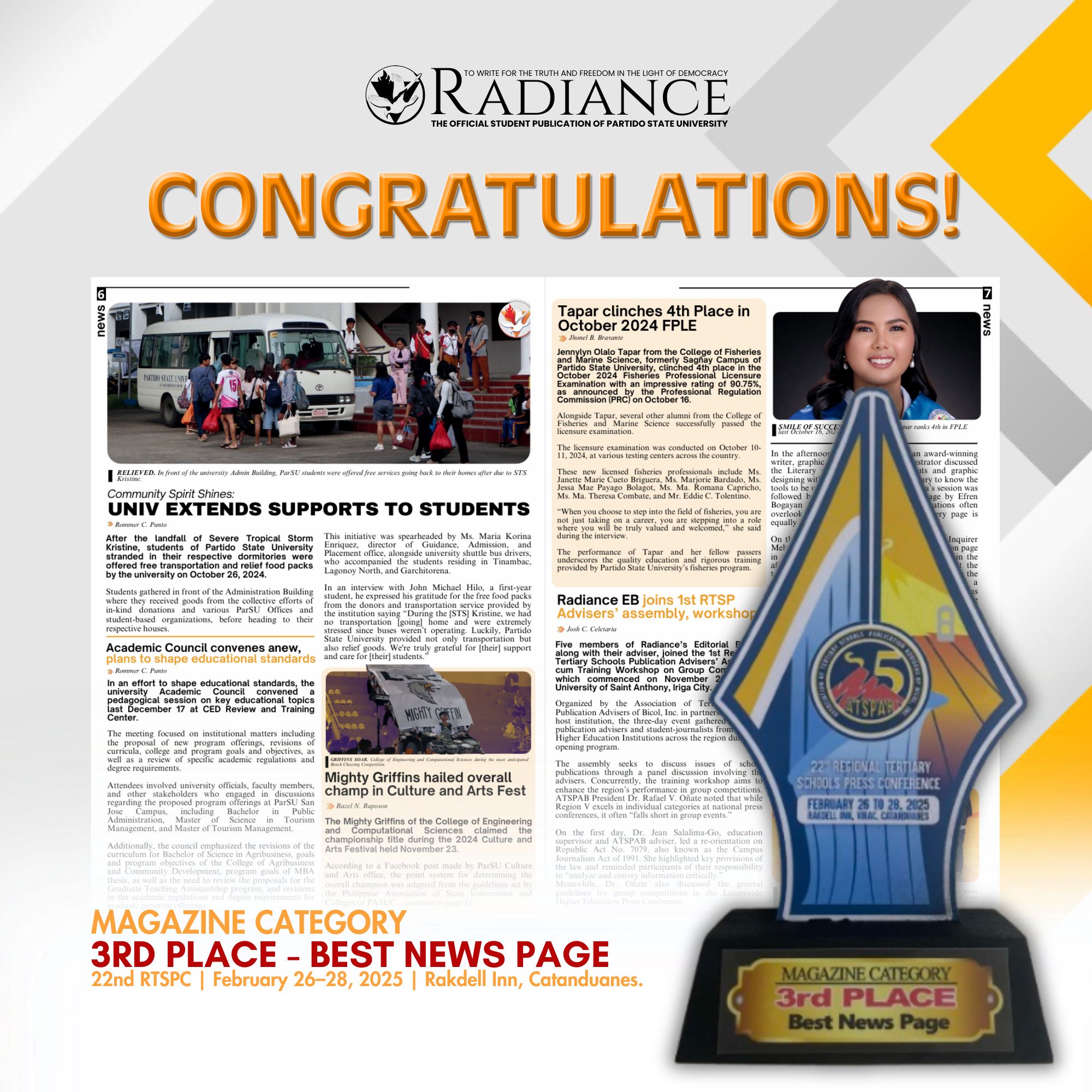 2023 | Ms. Maria Alyssa Gaile C. Credo, Rank 9, Licensure Examination for Teachers in Elementary Level. Achieved a perfect passing rate of 100% in the licensure examination for the Bachelor of Elementary Education. |